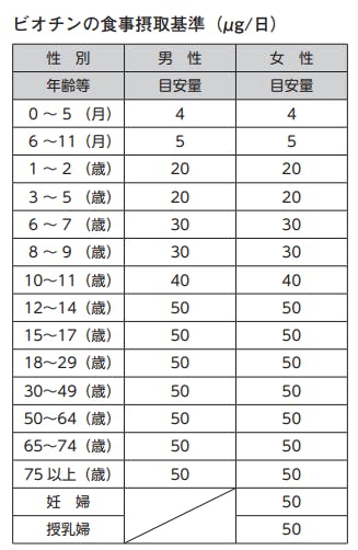 大量のビオチン経口投与でも健康障害は確認されていないため、上限量も定められていません。