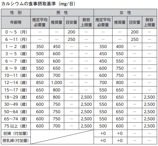 成人の男女で、650~800mg/日摂取が推奨量とされています。