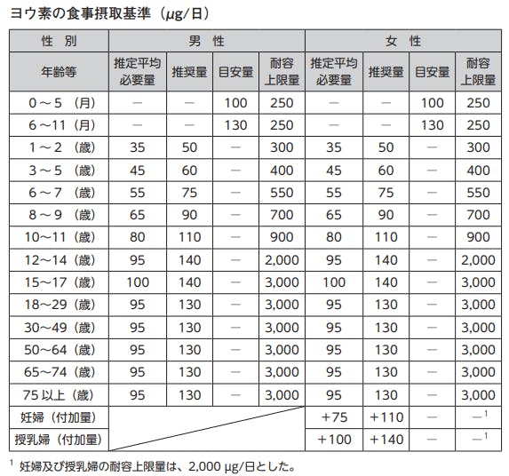 成人の男女で、130μg/日摂取が推奨量とされています。