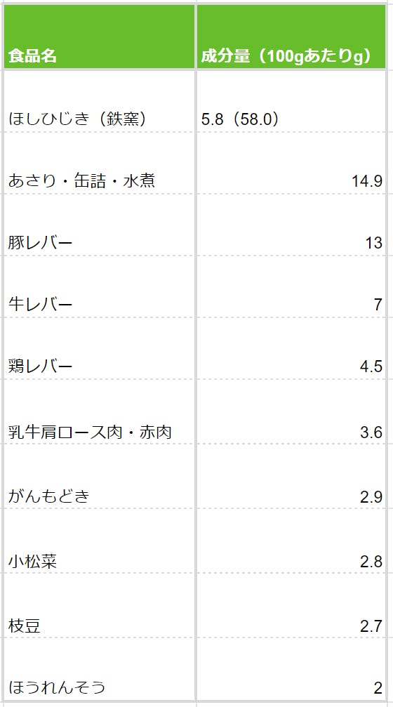 赤血球の成分であるヘモグロビンを構成するミネラルです。