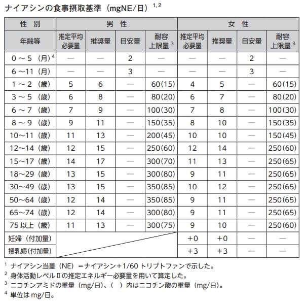 食事摂取基準ではナイアシンの摂取基準がニコチン酸量として設定されています。