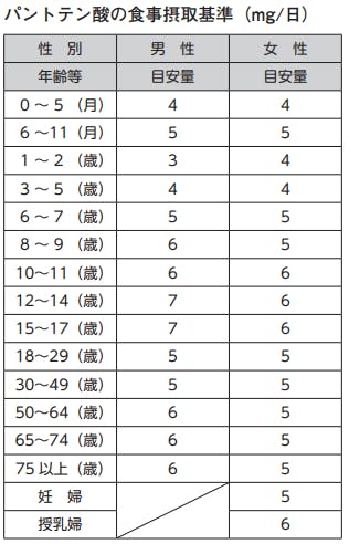 また、パントテン酸のみを過剰に摂取した報告もないため健康障害は確認されておらず、上限量も定められていません。