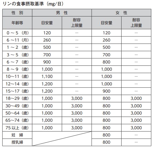 成人の男女で、800~1,000mg/日摂取が目安量とされています。