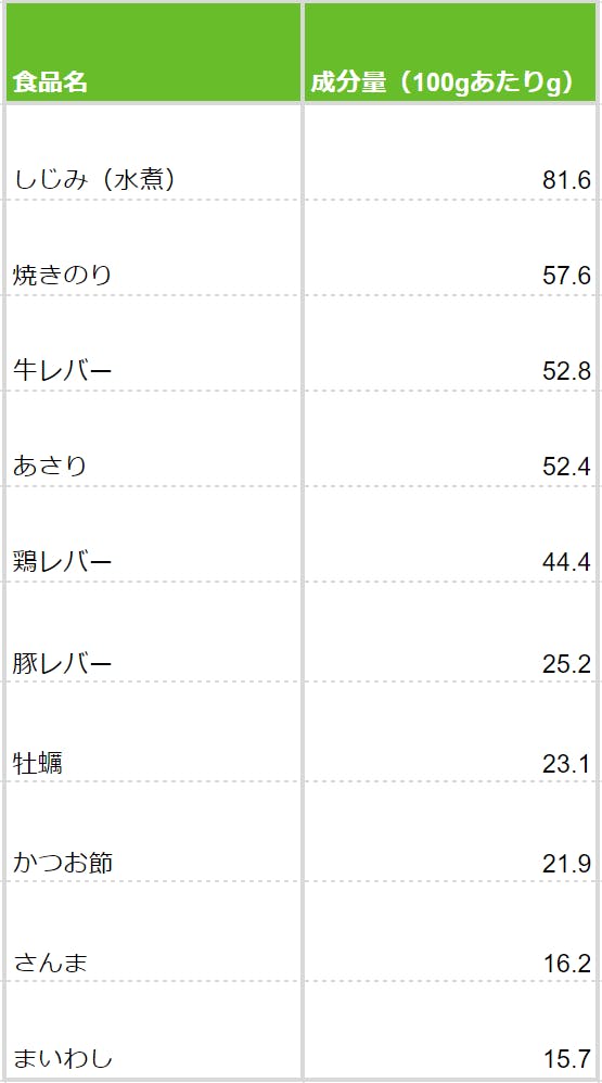 体中に酸素を供給する機能を担うヘモグロビンの合成に関わり、葉酸と共に赤血球を作ります。